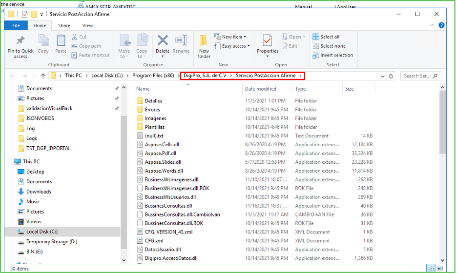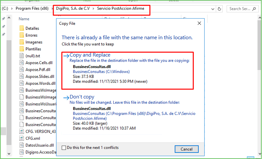 Para que el servicio de postaccion funcione de forma correcta es necesario agregar y/o reemplazar las siguientes dlls´.