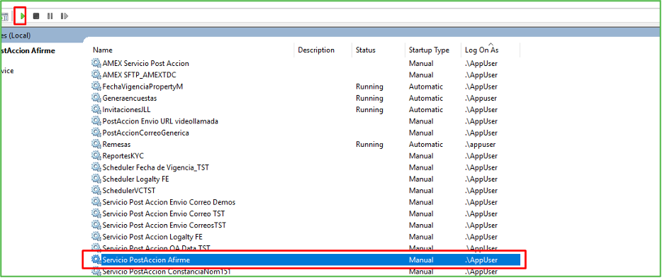 Una ves que estamos dentro de el servidor localizaremos el servicio de postación que utilizamos en este proyecto y realizaremos los siguientes pasos.