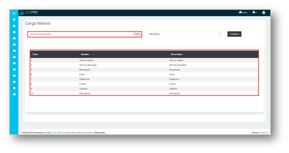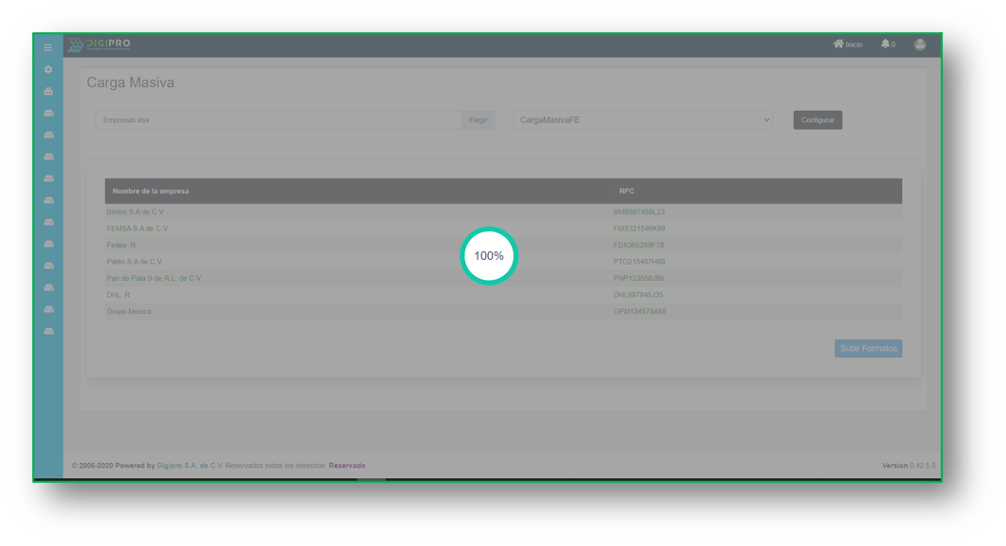 Al finalizar la configuración de los elementos y columnas del archivo que realizara la Captura Masiva se mostrara el botón “Subir Formato” el cual realizara la captura masiva de los datos a el Formato Electrónico.