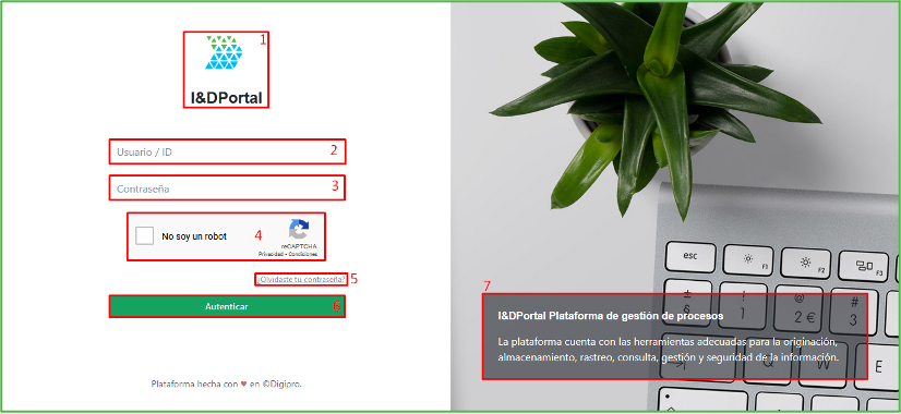 El presente manual describe los cambios realizados en el login así como su configuración en las imágenes de fondo y logo, recuperación de contraseña, descripciones y uso de captcha para mayor seguridad al entrar al portal.