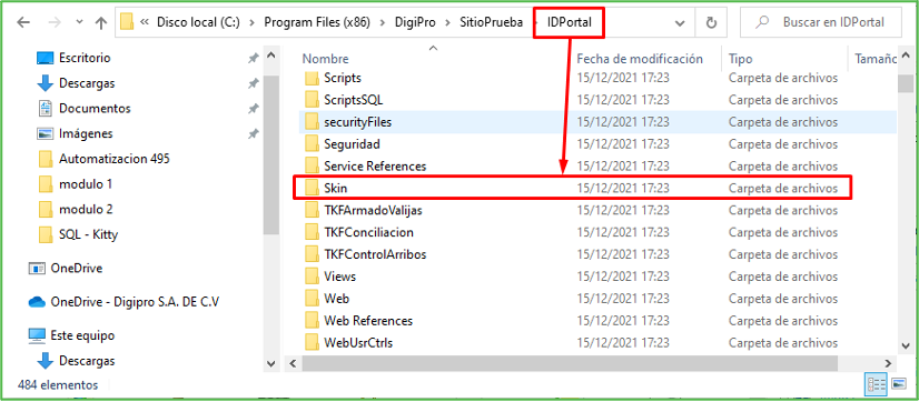 La carpeta de “Skin” se encuentra dentro de la carpeta de ID Portal: