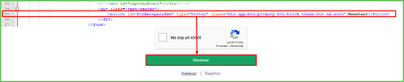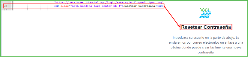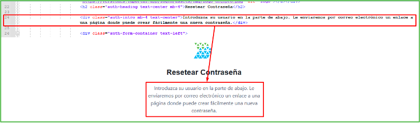 - Archivo html de Reseteo de Contraseña: Archivo donde se configura la pantalla de reseteo de contraseña del portal