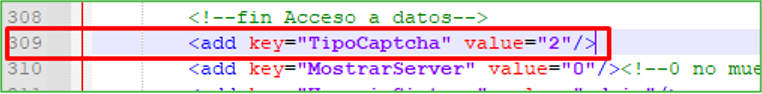 Dentro del Web.config del portal existe una instrucción en donde se configura el captcha.