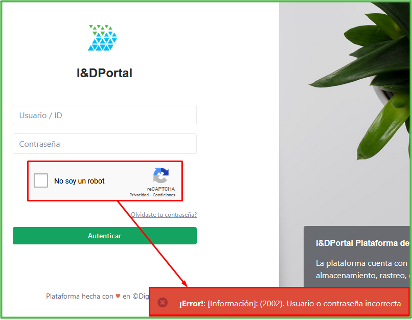 - Captcha: captcha de seguridad para entrar al login, es necesario que se apruebe para entrar correctamente