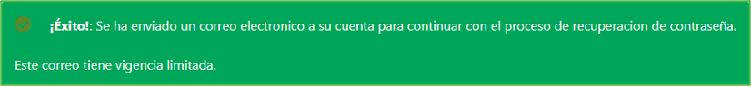 Al dar clic en el botón “Resetear” el sistema envía un correo electrónico al usuario, en el portal se muestra el siguiente modal de confirmación: