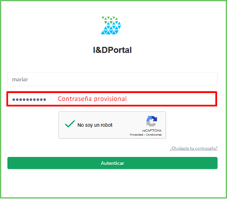 - Botón para recuperar la contraseña: botón para, en caso de ser necesario, recuperar la contraseña del usuario