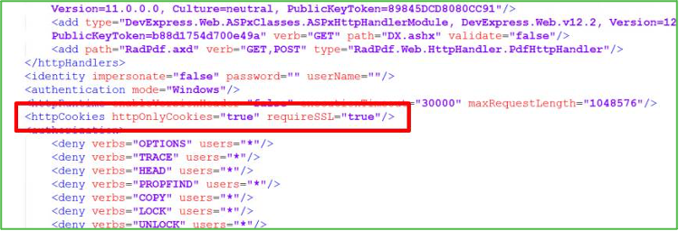 Para la sección de “Missing Secure Attribute in Encrypted Session (SSL) Cookie” se resuelve con las siguientes modificaciones en el archivo Web.Config del IDPortal, es importante resaltar que el portal debe estar en https.