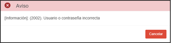 En caso de no ingresar los datos correctamente, el sistema arrojará el siguiente aviso.