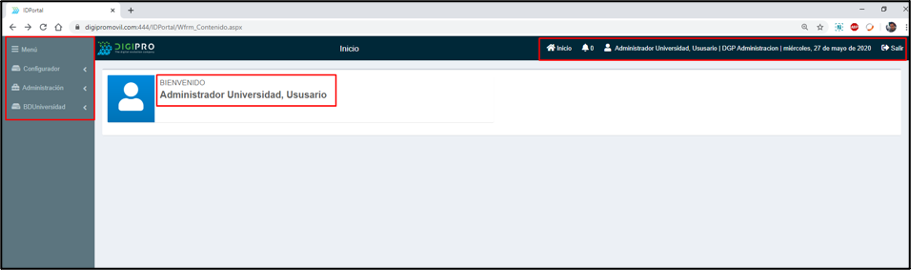 De haber ingresado los datos correctamente, se abrirá la pestaña de inicio inicio del portal.