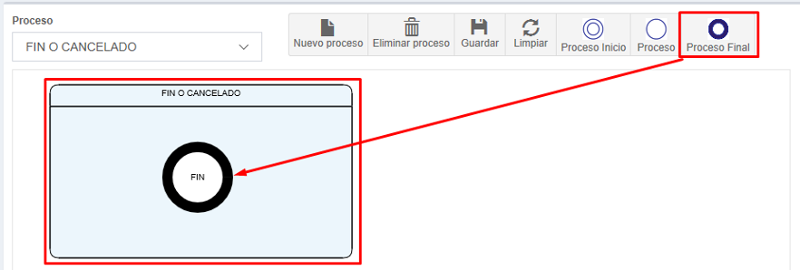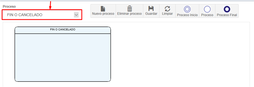 Seleccionamos el proceso de “FIN O CANCELADO”, para este proceso nos aparecerá la siguiente ventana.