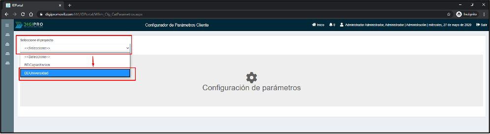 En la barra desplegable “Seleccione el proyecto” seleccione el Proyecto Creado.