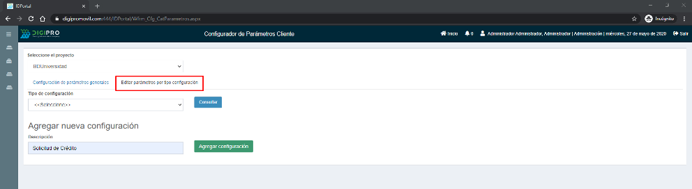 1. En el text box list “Tipo de configuración” seleccione “NombreDescripción” que se agregó.