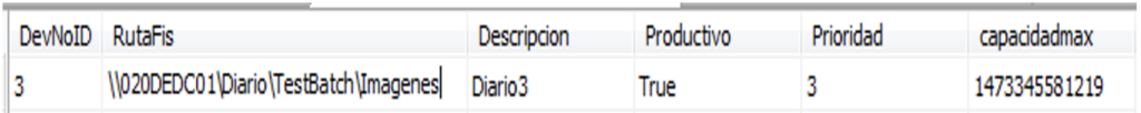 ID del dispositivo en el que se respaldarán las imagenes. Esta etiqueta puede ir vacía cuando la publicación es en Linea, para la publicación de un expediente Nuevo con imágenes respaldadas se validará que este dispositivo realmente exista. Se puede consultar en la tabla “Dispositivos” en el campo “Descripcion” de la base de datos cliente.