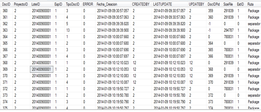 El ProyectoID, LoteID, DocID, + ExtID hace referencia a la tabla Digitalizamain