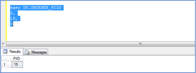 A continuación se detalla el procedimiento que se debe seguir si se desea colocar el valor del PIID, este ejemplo es cuando solo existe un proceso de Recuperación. En caso de existir 2 como se mostró en el ejemplo anterior, el sp devolverá dos valores.
