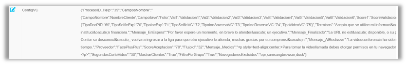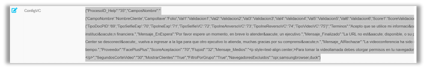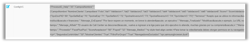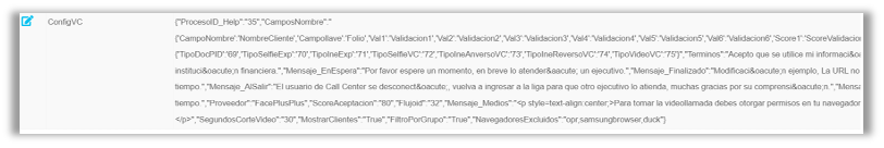 Con esto habremos modificado nuestro valor “ScoreAceptacion” de manera exitosa, en el IDPortal se puede verificar el campo ConfigVC modificado.