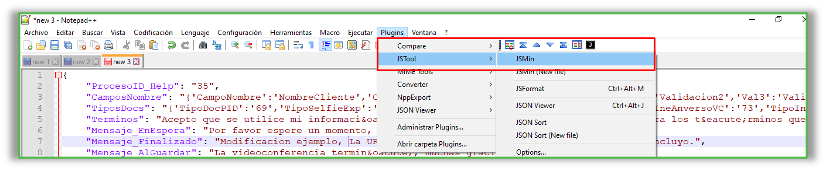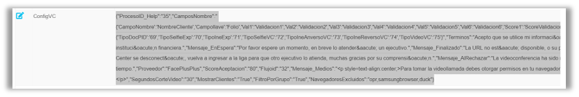 Copiamos el valor que tiene el parámetro “ConfigVC”, de preferencia usar Notepad++ ya que nos permite acomodar el texto a cualquier propiedad en este caso será aun formato JSON