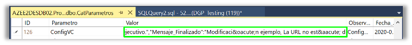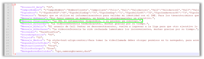 Con esto habremos modificado nuestro mensaje “Mensaje_finalizado” de manera exitosa, en el IDPortal se puede verificar el campo ConfigVC modificado.