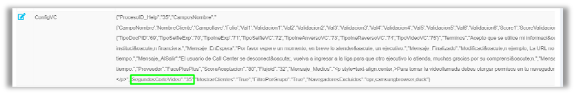 Con esto habremos modificado nuestro tiempo en “SegundosCorteVideo” de manera exitosa, en el IDPortal se puede verificar el campo ConfigVC modificado.