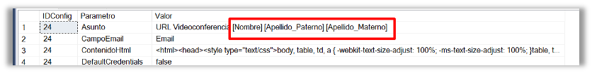 - Al estar en esta forma vamos a copiarlo e ingresarlo en una tabla que se encuentra dentro del proyecto en el cual está dada de alta la videoconferencia.