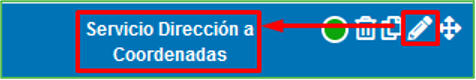 El servicio se agrega, damos clic en el icono y cambiamos el nombre a “Servicio de Dirección a Coordenadas”.