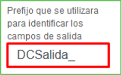 Por último, en la sección “Prefijo que se utilizara para identificar los campos de salida” agregamos el prefijo “DCSalida_”.