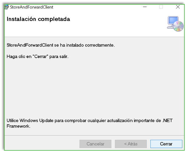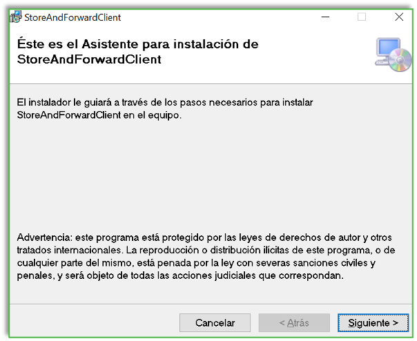 Ejecutar el archivo SetupStoreAndForwardClientV9.7.1.0.msi.