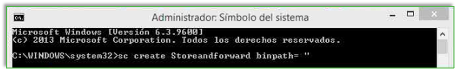 En caso de que aun reiniciando marque el mismo error se elimina el servicio: sc delete Storeandforward y se vuelve a crear.
