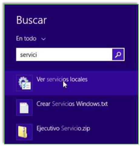 Nuevamente en el buscador de WINDOWS buscaremos los servicios locales tecleando “servicios”