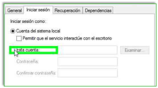 Posteriormente nos vamos a la pestaña “Iniciar sesión”, activamos la casilla “Esta cuenta”