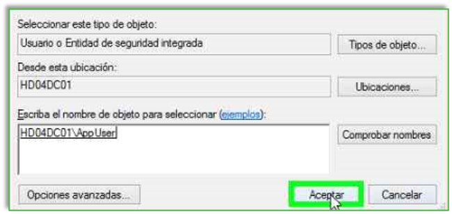 En Resultados de búsqueda en la parte inferior, damos doble clic sobre la cuenta “AppUser”.