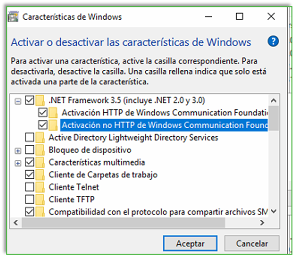 En esta sección, únicamente dejaremos habilitadas las opciones que se muestran en la pantalla. Por último, presionamos el botón de cerrar.