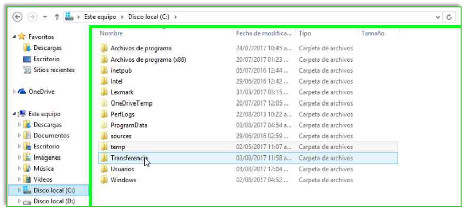 Por último, ingresamos a la carpeta “Transferencia”, ubicada en la unidad C: