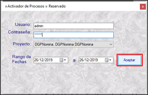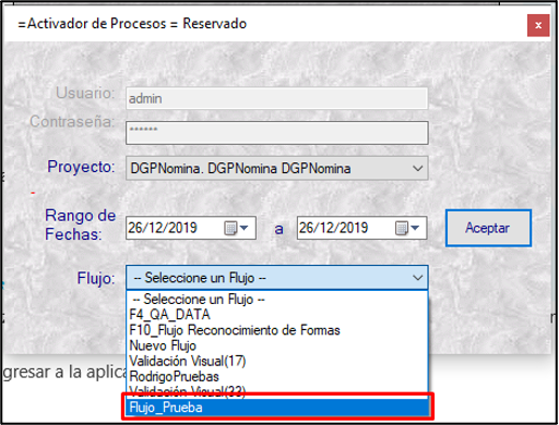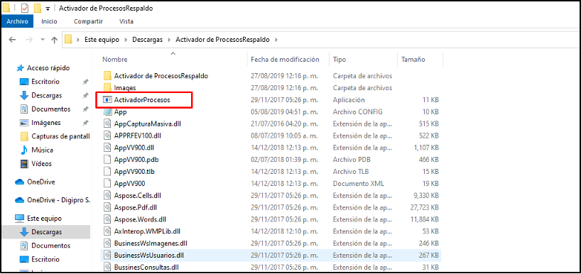 - Dar clic en la aplicación, en donde mostrará la pantalla de activación de proceso