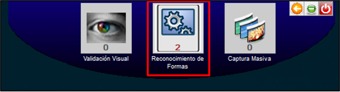 En la pantalla Reconocimiento de Formas se pueden ver tres secciones principales, y se seccionan en Imagen, Expediente y Botones de acción.