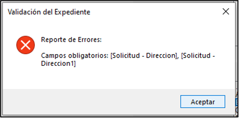 Si los documentos no se encuentran correctos en su validación se obtiene el siguiente mensaje de acuerdo con las validaciones que no se hayan cumplido.