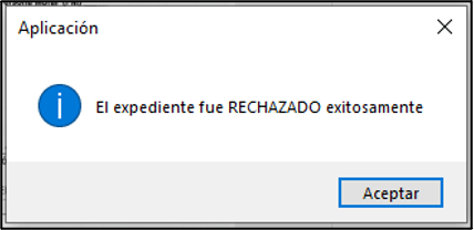 - Si No acepta corregir los errores se rechaza expediente y aparece el motivo de rechazo.