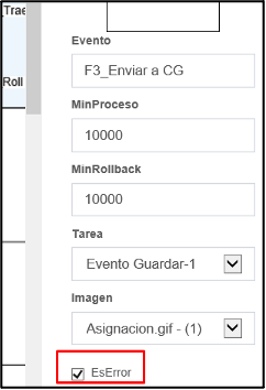 Nota: Para ver los rechazos de un expediente es necesario tener seleccionada en nuestro flujo la opción de EsError en cada uno de nuestros eventos.