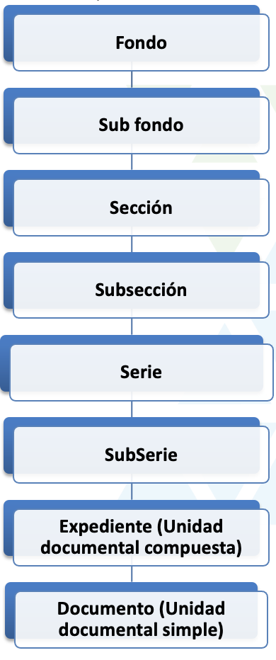 Podremos identificar desde el “FONDO”, “SECCIÓN”, “SERIE” y a partir de este nivel la creación de “EXPEDIENTES” y “DOCUMENTOS”.