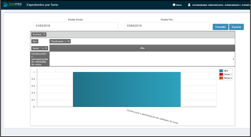 Solamente hasta posicionarse al nivel de una Serie será posible crear un nuevo Expediente.