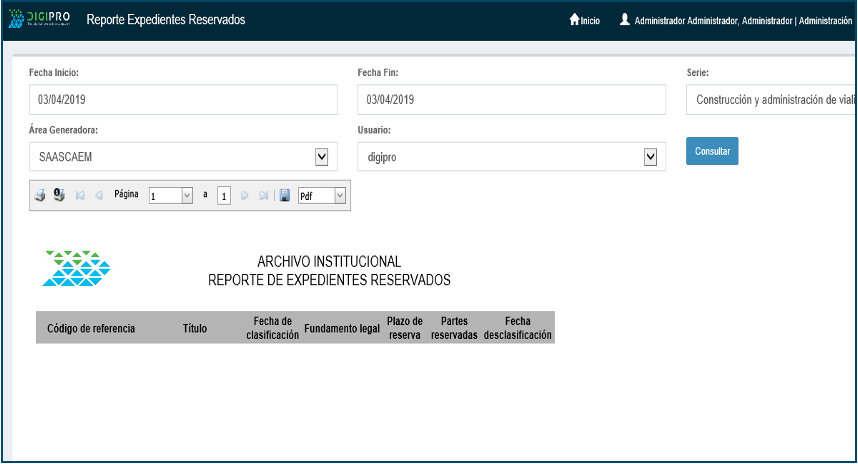 Para generar este reporte es necesario definir el Periodo, la Serie y el Área Generadora del cual se obtendrá este