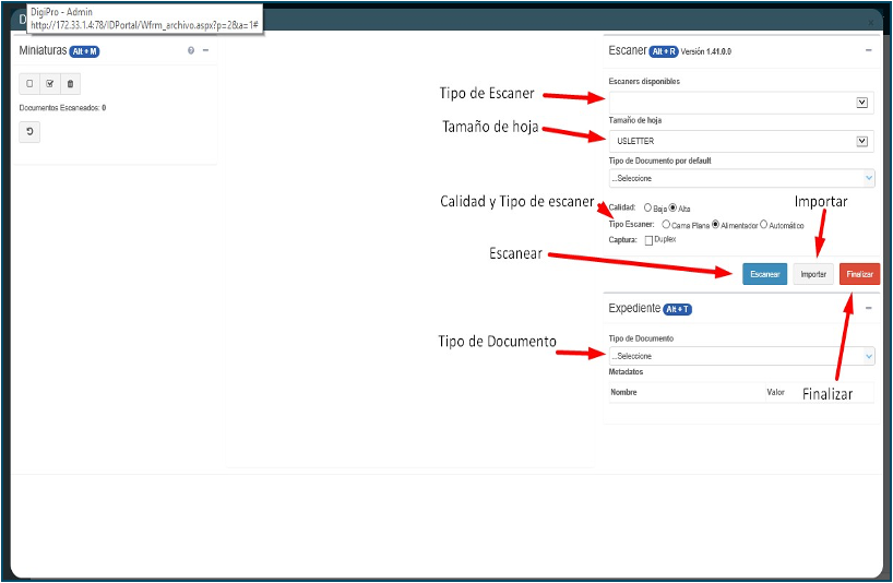 Tipo de Escáner-           Nos permite seleccionar el escáner instalado o disponible para la digitalización