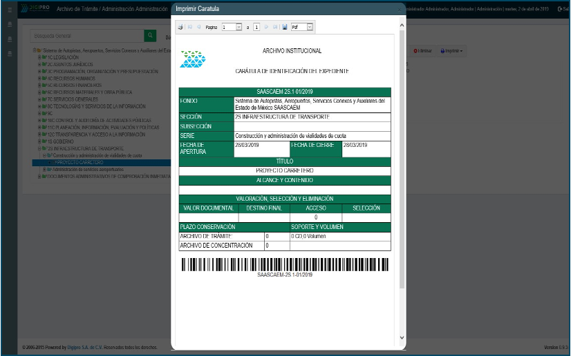 A través de la creación de cada uno de los expedientes y/o documentos es posible contar con un registro descriptivo por medio de caratulas, con las cuales se puede contar tanto digital como físicamente.