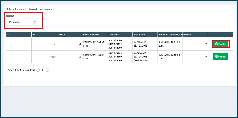 La opción de la Administración de Prestamos en Archivo Histórico, tiene la funcionalidad precisa y tal como está en el archivo de Trámite y Concentración, con la misma estructura y estados para las solicitudes necesarias.