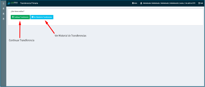 Para ingresar a la Transferencia Secundaria, es necesario ir a la fase de Concentración y elegir la opción con el mismo nombre.