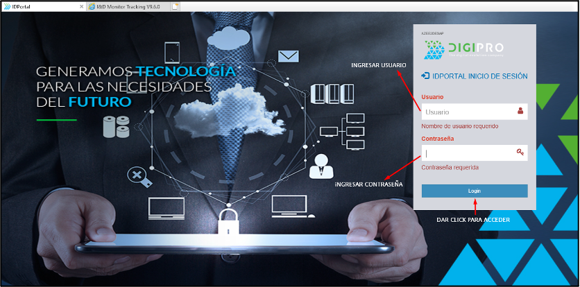 Para poder usar el “I&D Portal Tracking”, lo primero que debemos hacer es irnos a nuestro portal he ingresar los datos que nos solicitan.