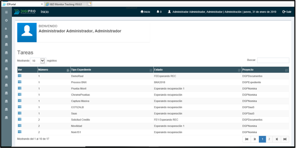 Si queremos probar el flujo de nuestro proyecto, primero debemos digitalizar un expediente, para que podamos monitorearlo en el “I&D Portal Tracking