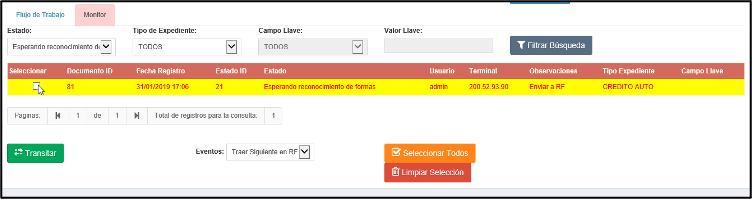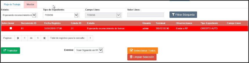 • Monitor: Pestaña en la cual podemos visualizar los siguientes estatus de nuestro expediente: