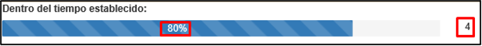 Dentro de la pestaña flujo de trabajo, en la parte inferior izquierda veremos una barra color azul, la cual indica el porcentaje y los expedientes que se encuentran “Dentro del tiempo establecido”.