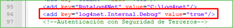 Log4net.Internal.Debug: indica la cantidad de errores que van a almacenarse en el archivo, si el valor esta en “true” indica que guarda los debug, si el valor esta en “false” guarda todos los errores.